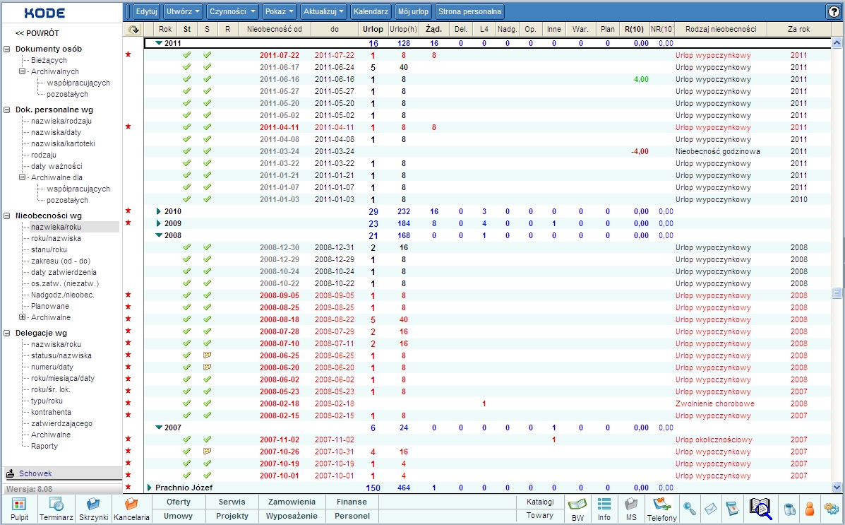 Funkcje modułu PERSONEL w połączeniu z modułem Nieobecności :